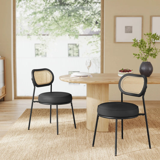 Set van 2 Keukenstoelen – Polyrattan Rugleuning & Kunstleren Zitting | Comfortabel & Stijlvol