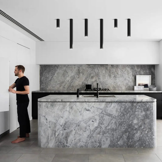 Luxe Zwarte Ronde Natuursteen Hanglamp – Moderne LED Slaapkamer & Woonkamer Verlichting